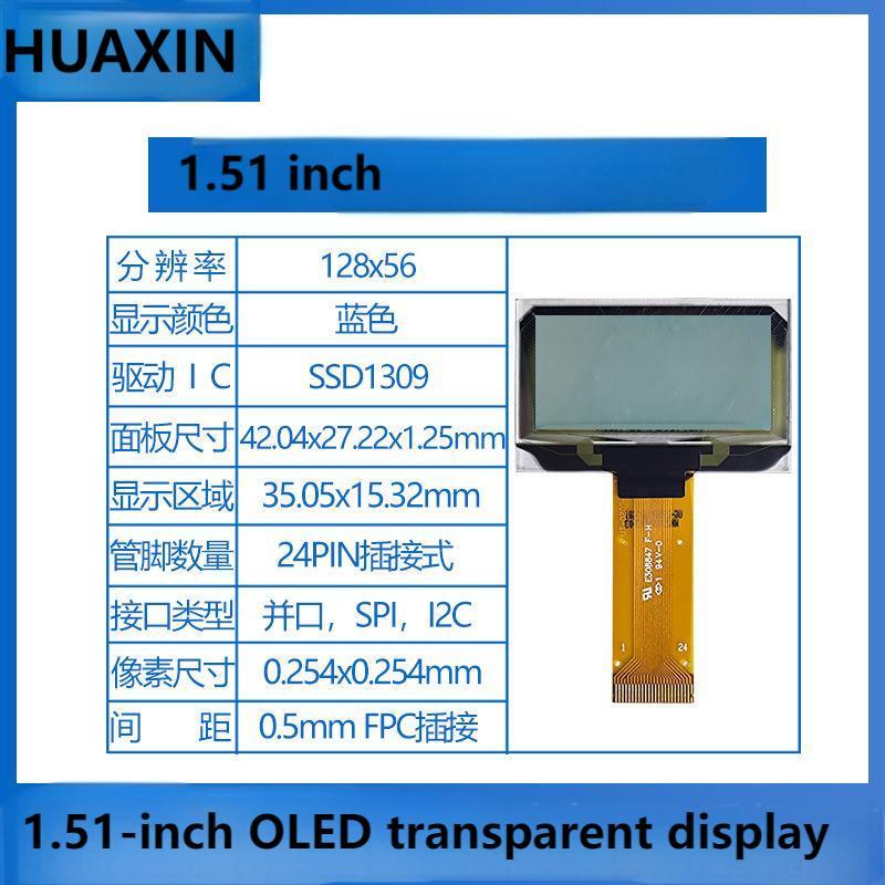 1.51인치 투명한 OLED 디스플레이, 128×56 해상도, 24핀 플러그인 인터페이스. 스마트 윈도우, 크리에이티브 전자제품 및 자명 투명한 스크린 애플리케이션에 이상적입니다.